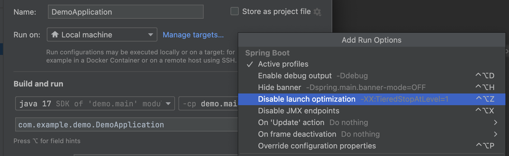 로컬 개발 환경에서는 자주 애플리케이션을 껐다 켰다하면서 사용하기 때문에 빠른 앱 실행속도를 위해 기본적으로 활성화돼 있다.